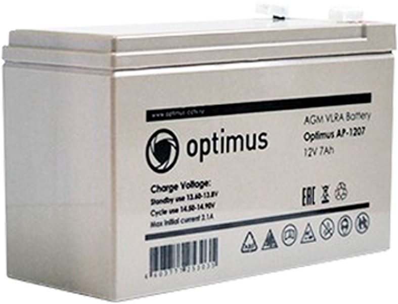 Свинцово-кислотный стационарный аккумулятор резервного питания Optimus OP1207 (напряжение 12 В, ёмкость 7 Ач) разработан специально для охранно-пожарных систем, он может использоваться в буферном и циклическом режимах. Срок службы батареи при соблюдении правил эксплуатации составляет 3 года. Корпус OP 1207 представляет из себя запаянный моноблок из химически стойкого ABS пластика, аккумулятор герметичен, долив воды не требуется на протяжении всего периода эксплуатации. Односторонние клапаны располагаются на крышке батареи и позволяют поддерживать давление необходимое для рекомбинации газов. Технология AGM (стекловолоконные сепараторы, удерживающие электролит неподвижно) повышают устойчивость Optimus OP1207 к воздействию температур.