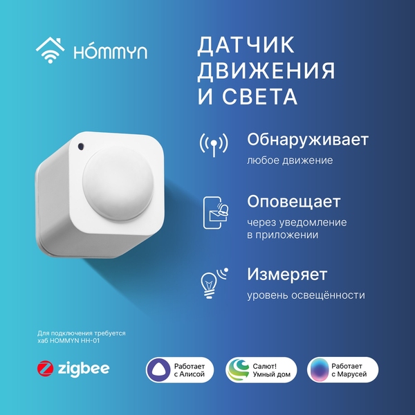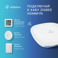 * Для подключения к приложению Hommyn требуется Zigbee хаб - Блок управления (шлюз) HOMMYN Hub HH-01.