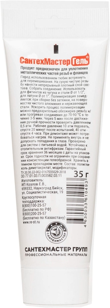Соединение, собранное с использованием герметика Сантехмастер Гель Красный для чугуна и стали надежно выдерживает любые неприятности вроде сильных вибраций, огромного давления и влияния агрессивных сред. Эти свойства помогают надежно герметизировать водопроводы, газопроводы, системы охлаждений и тормозные магистрали.