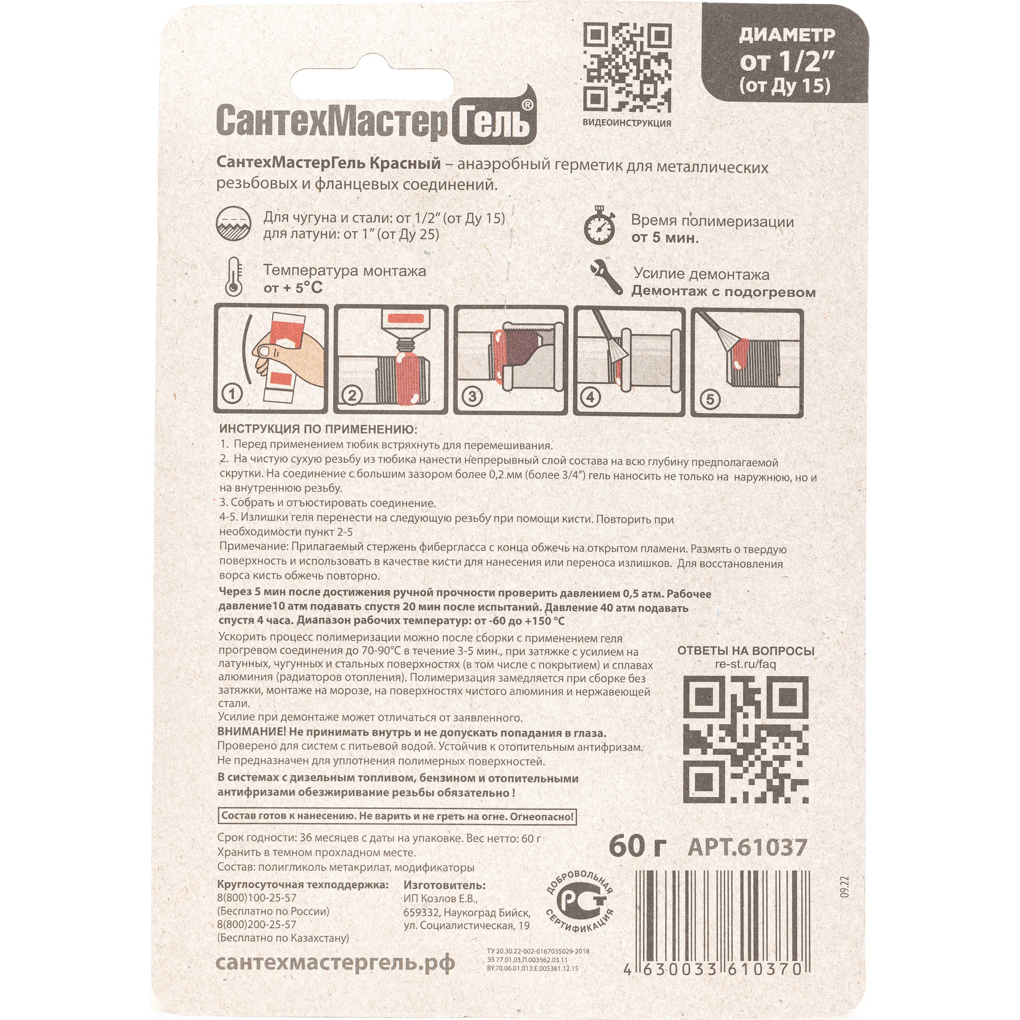 Соединение, собранное с использованием герметика Сантехмастер Гель Красный для чугуна и стали надежно выдерживает любые неприятности вроде сильных вибраций, огромного давления и влияния агрессивных сред. Эти свойства помогают надежно герметизировать водопроводы, газопроводы, системы охлаждений и тормозные магистрали.