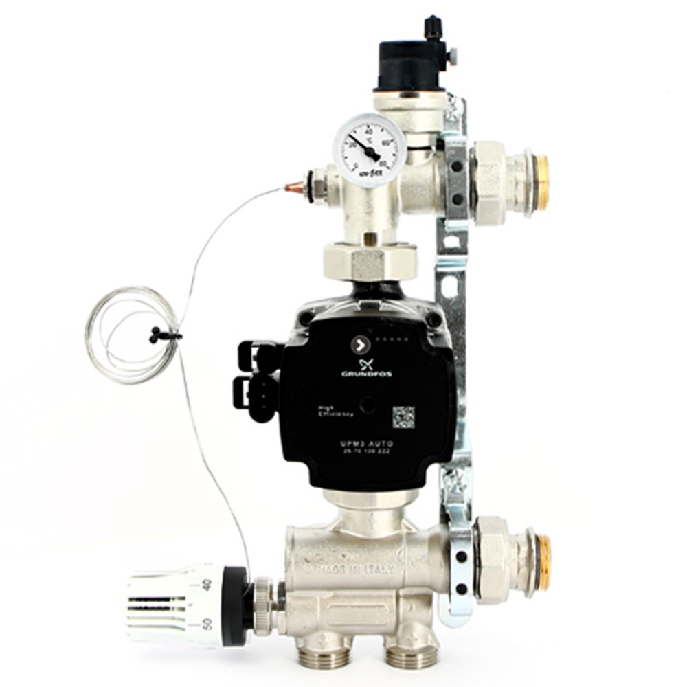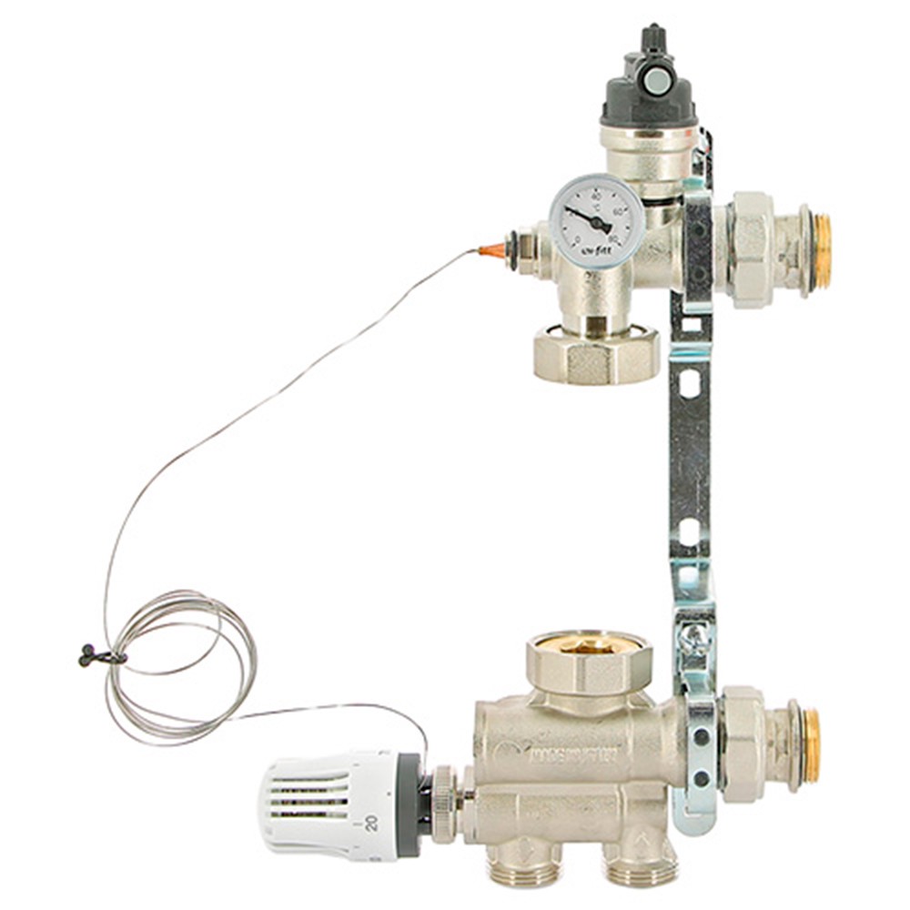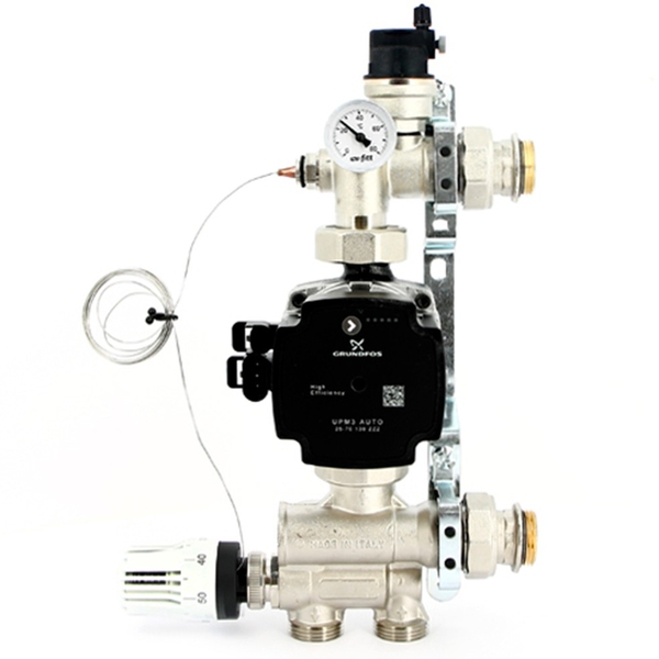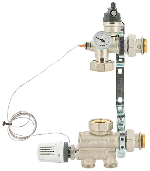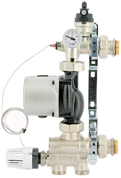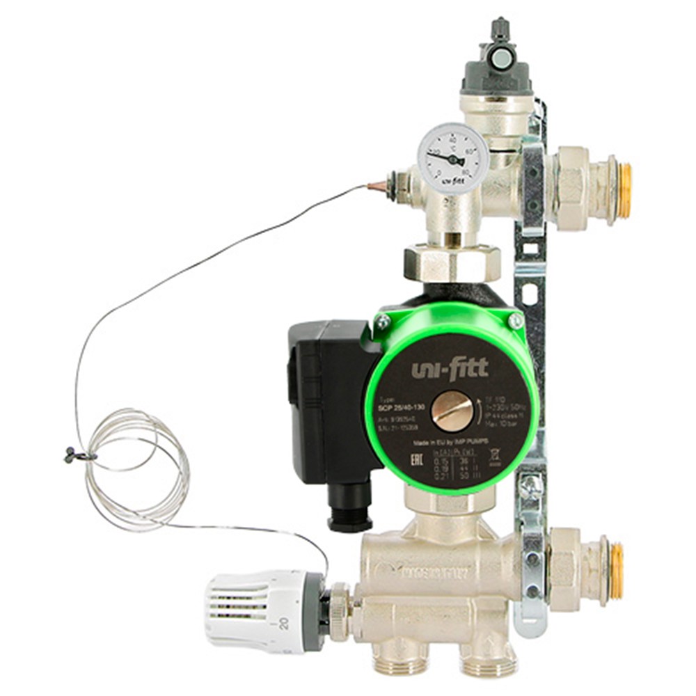 Группа насосно-смесительная Uni-Fitt предназначена для создания низкотемпературных систем отопления (типа «теплый пол»). Монтируется непосредственно на коллекторной группе низкотемпературного контура и подключается к высокотемпературному контуру системы отопления.