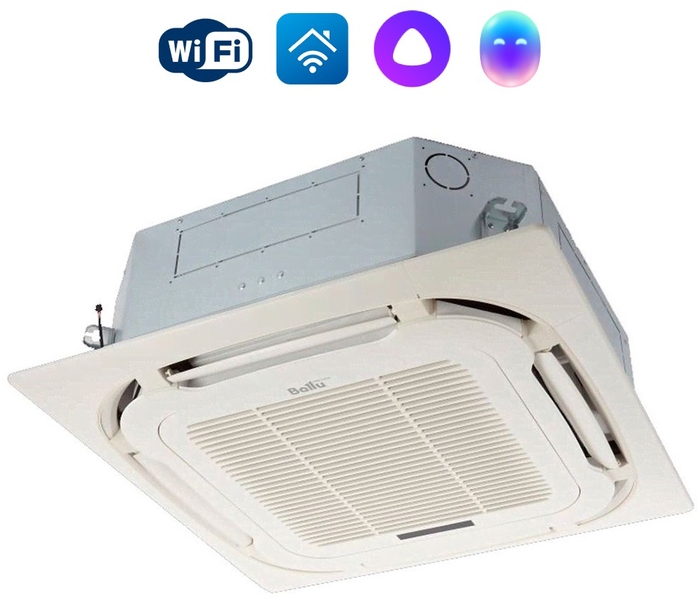 Сплит-система способна охлаждать или обогревать помещения даже при температурах окружающего воздуха до -15°С. Кассетные блоки обладают круговым потоком распределения воздуха, а также встроенной дренажной помпой с высотой поднятия конденсата 1200 мм.