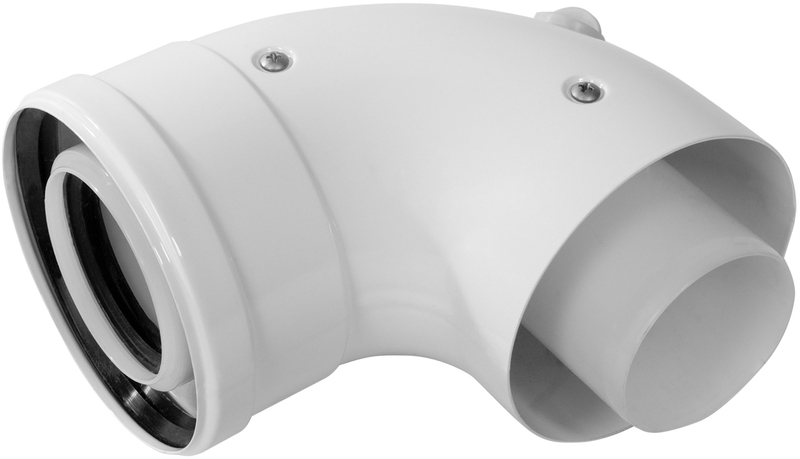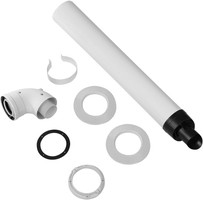 Комплект коаксиального дымохода диаметром 80/125 для конденсационных котлов. Изготовлен из алюминия/полипропилена. В комплекте: труба с наконечником D80/125 - 1шт, отвод 90гр D80/125 - 1шт, силиконовое уплотнение D80 - 1шт, силиконовое уплотнение D125 - 1шт, накладка декоративная (стеновая) - 2шт, хомут комплект - 1шт.