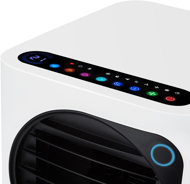 Новинка сезона 2025 – серия мобильных кондиционеров Ballu Eclipse выделяется жалюзи в форме окошка-иллюминатора и оригинальным цветовым индикатором режимов работы.