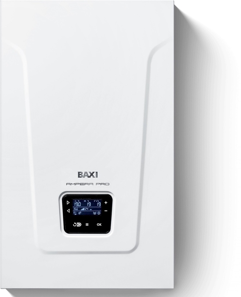 Главная особенность электрического котла BAXI AMPERA Pro - в нем используются твердотельные реле с воздушными охлаждением. Применение данной технологии дает большое количество преимуществ: гораздо больший эксплуатационный ресурс, высокое быстродействие, отсутствие механической контактной группы, бесшумность, гальваническая развязка от управляющей цепи и высокая надежность. Модельный ряд начинается с котлов мощностью 9 кВт, они могу быть как однофазными, так и трехфазными. Модели от 12 до 45 кВт поставляются в трёхфазном исполнении. Еще одним преимуществом котлов AMPERA Pro является улучшенная модуляция мощности. Модели от 9 кВт до 24 кВт имеют 6 ступеней модуляции мощности, а модели от 30 до 45 кВт - 9 ступеней. Это позволяет более точно регулировать мощность котла в соответствии с потребностями, что обеспечивает экономию энергопотребления и повышает комфорт и безопасность. AMPERA Pro оснащен разъемом OpenTherm и дин-рейкой внутри котла для быстрой и удобной установки системы удаленного управления BAXI Connect+.