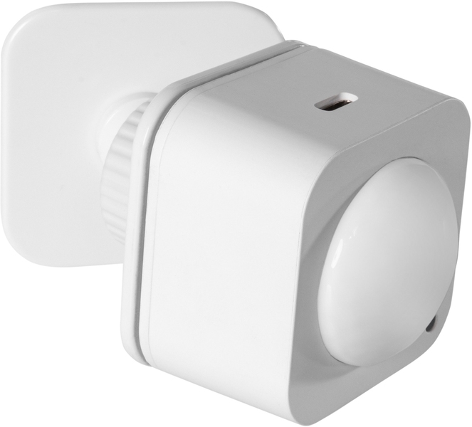 Кронштейн состоит из двух частей прямоугольной формы, соединяющихся шарнирным креплением. Широкий радиус поворота шарнира позволяет вращать прикрепленный на него датчик движения на 360 градусов.