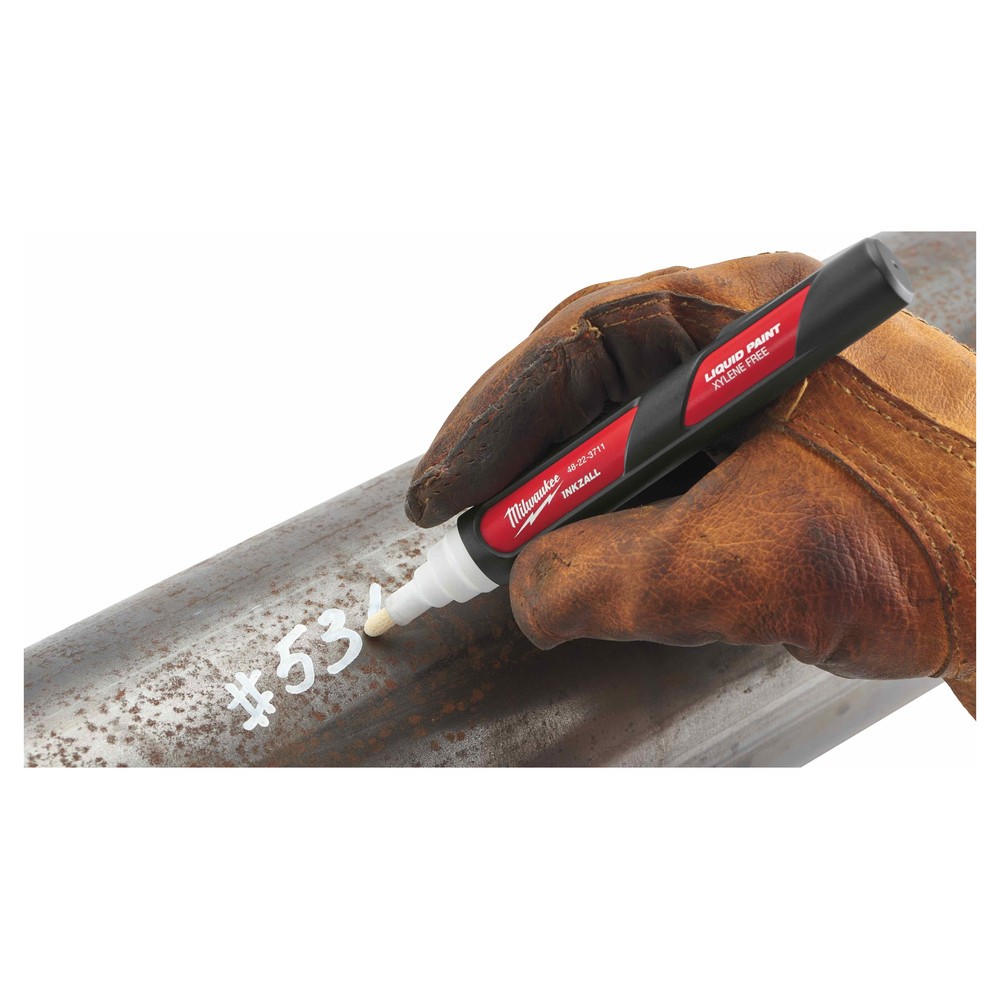 Белый маркер Milwaukee White-LP 48223711 не содержит ксилола. Надписи хорошо видны на темных поверхностях любого типа: