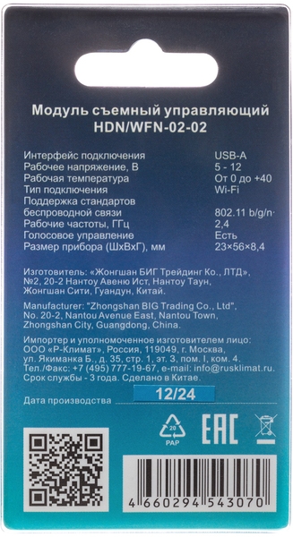 | Тип устройства | Управляющий модуль Wi-Fi |