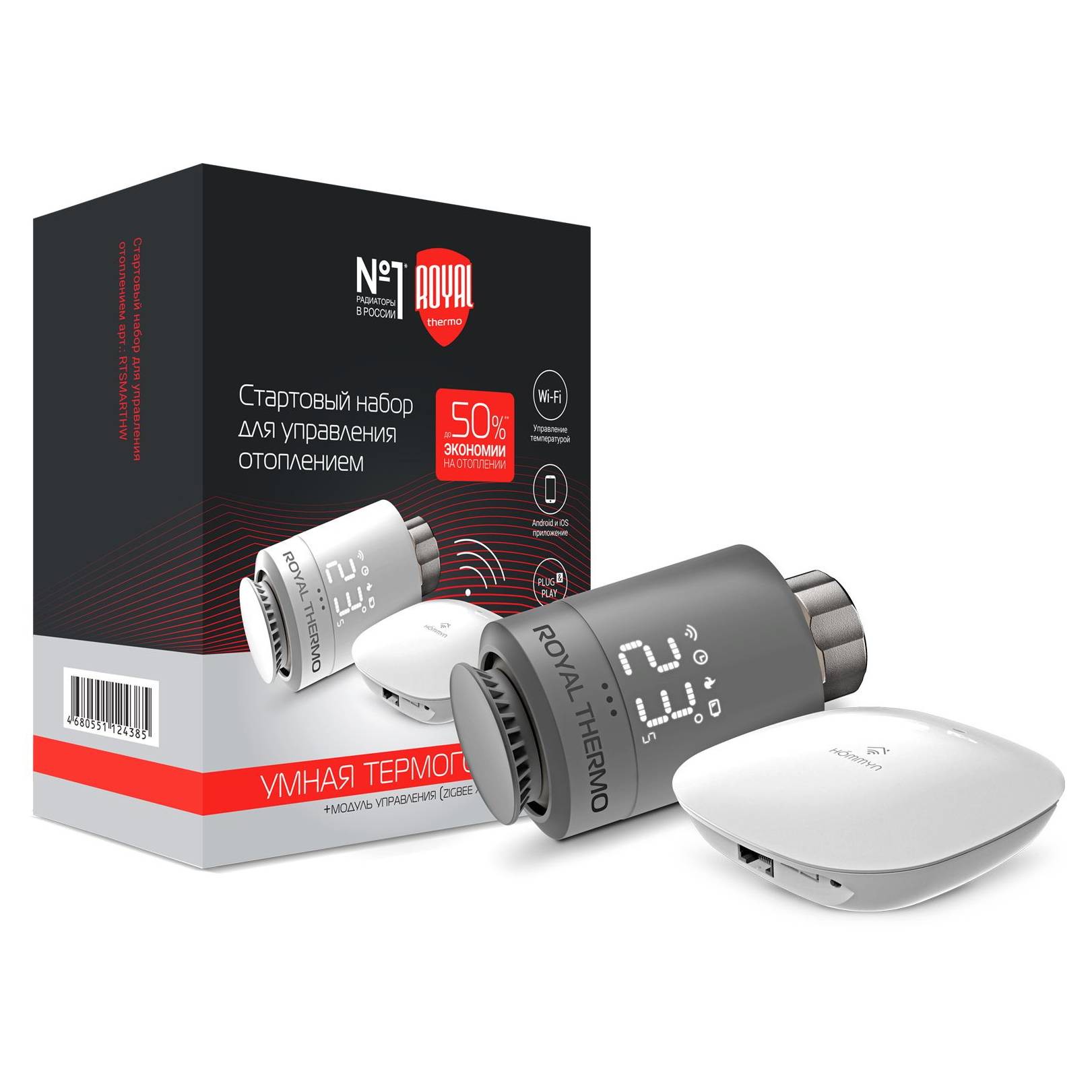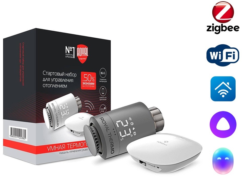 Набор для дистанционного управления отоплением Royal Thermo состоит из термостата и блока управления (хаб) HOMMYN с беспроводным протоколом Zigbee.
