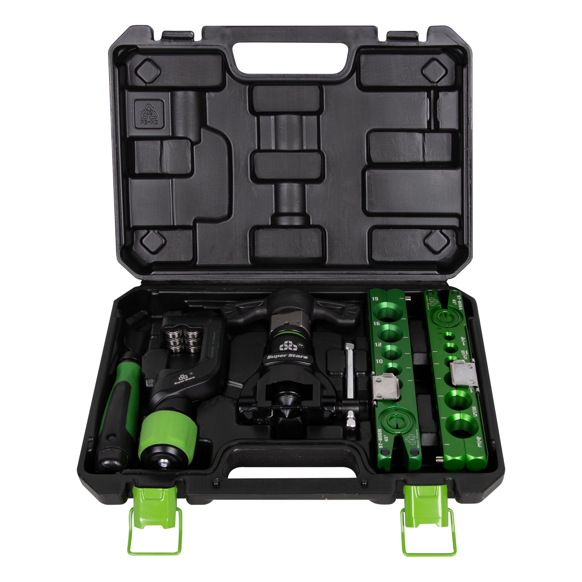 | Комплектность | Корпус развальцовки с рукояткой; плашка для зажима трубы; труборез; риммер |