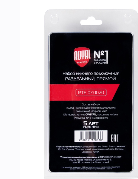 | Применение и соответствие | Предназначен для подключения секционных радиаторов royal Thermo с нижним подключением к системе отопления |