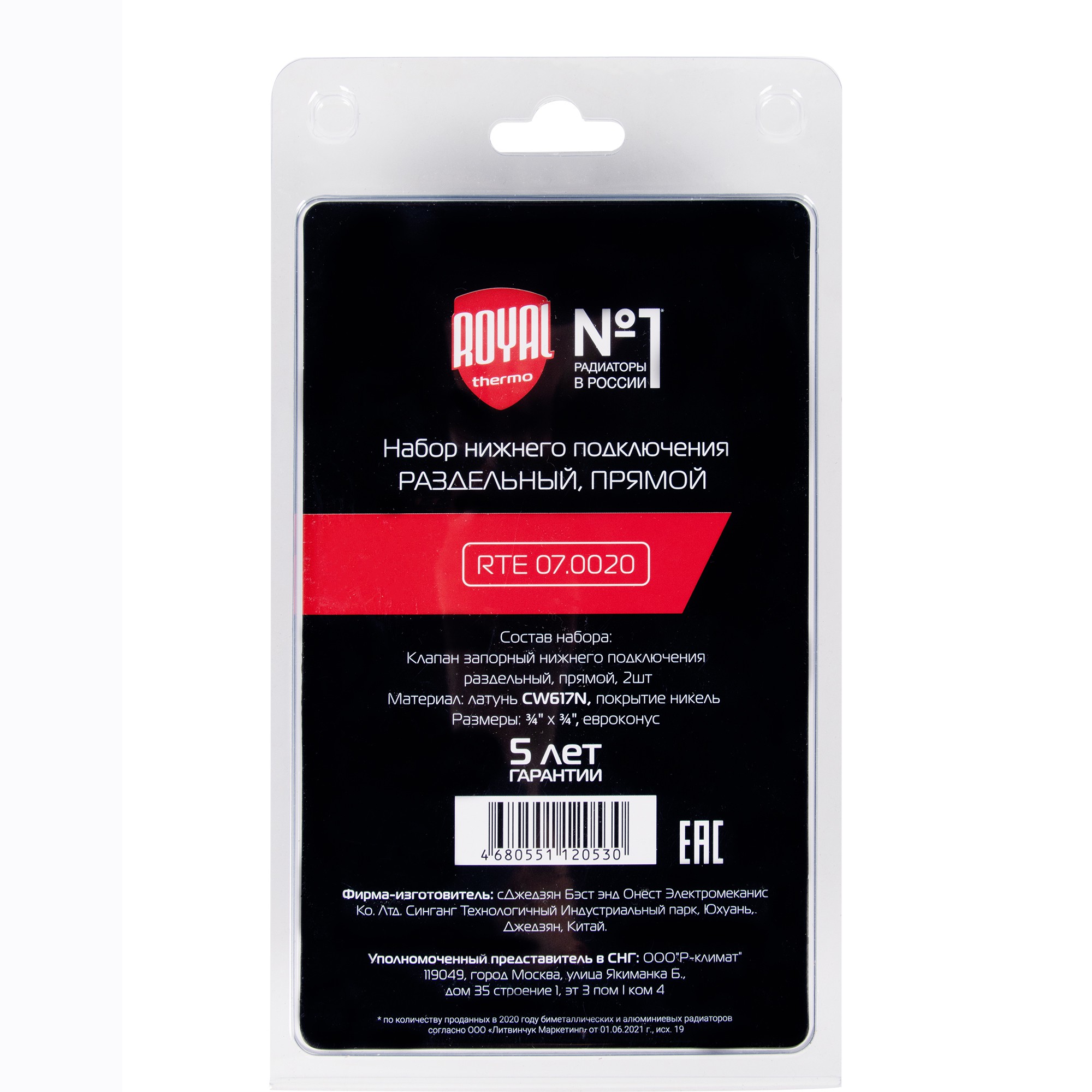 | Комплект поставки | 2 клапана 3/4х3/4ЕК в упаковке блистера |