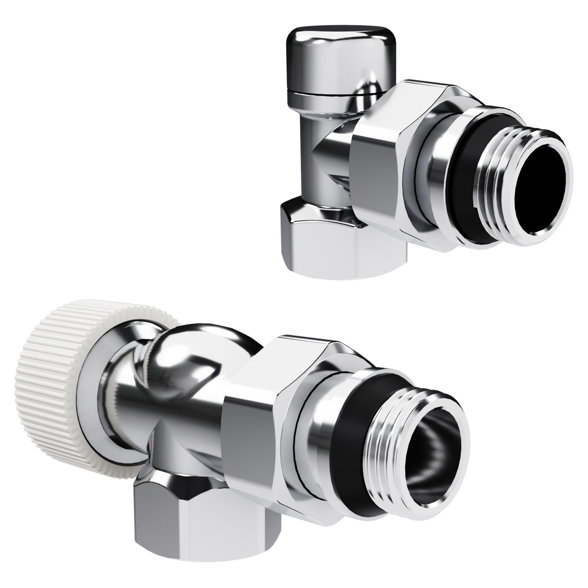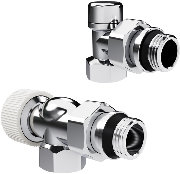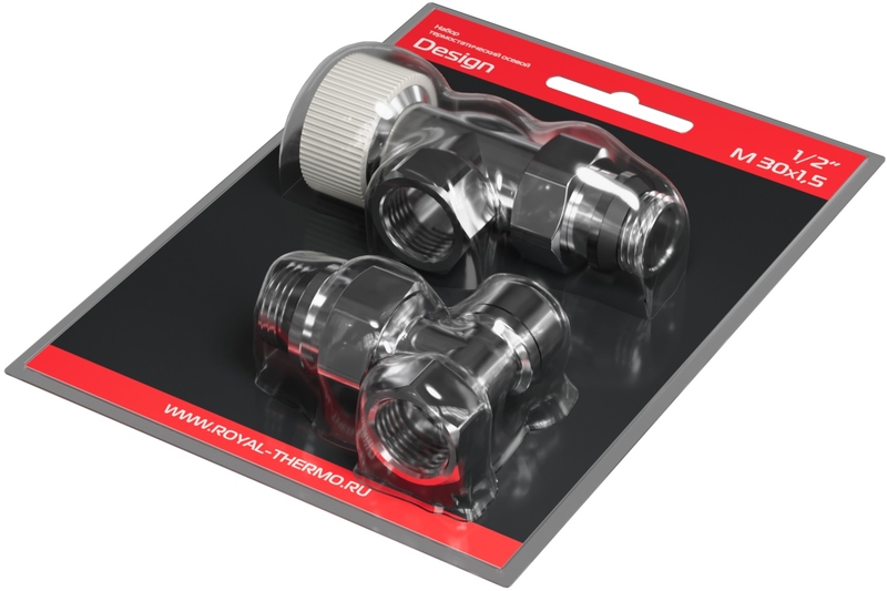 Термостатические наборы серии Design поставляется в комплектации: клапан термостатический для установки на подающий трубопровод, запорный клапан для установки на обратный трубопровод.