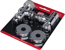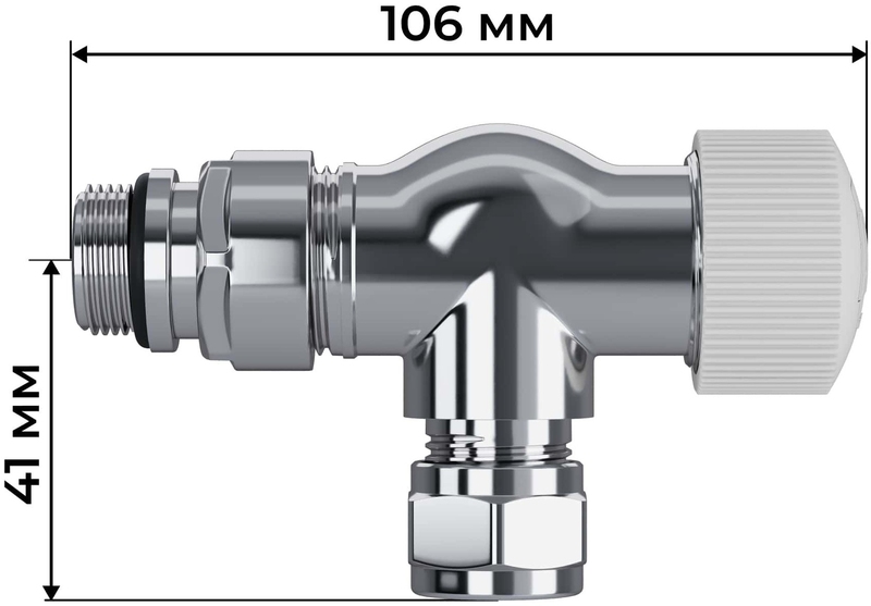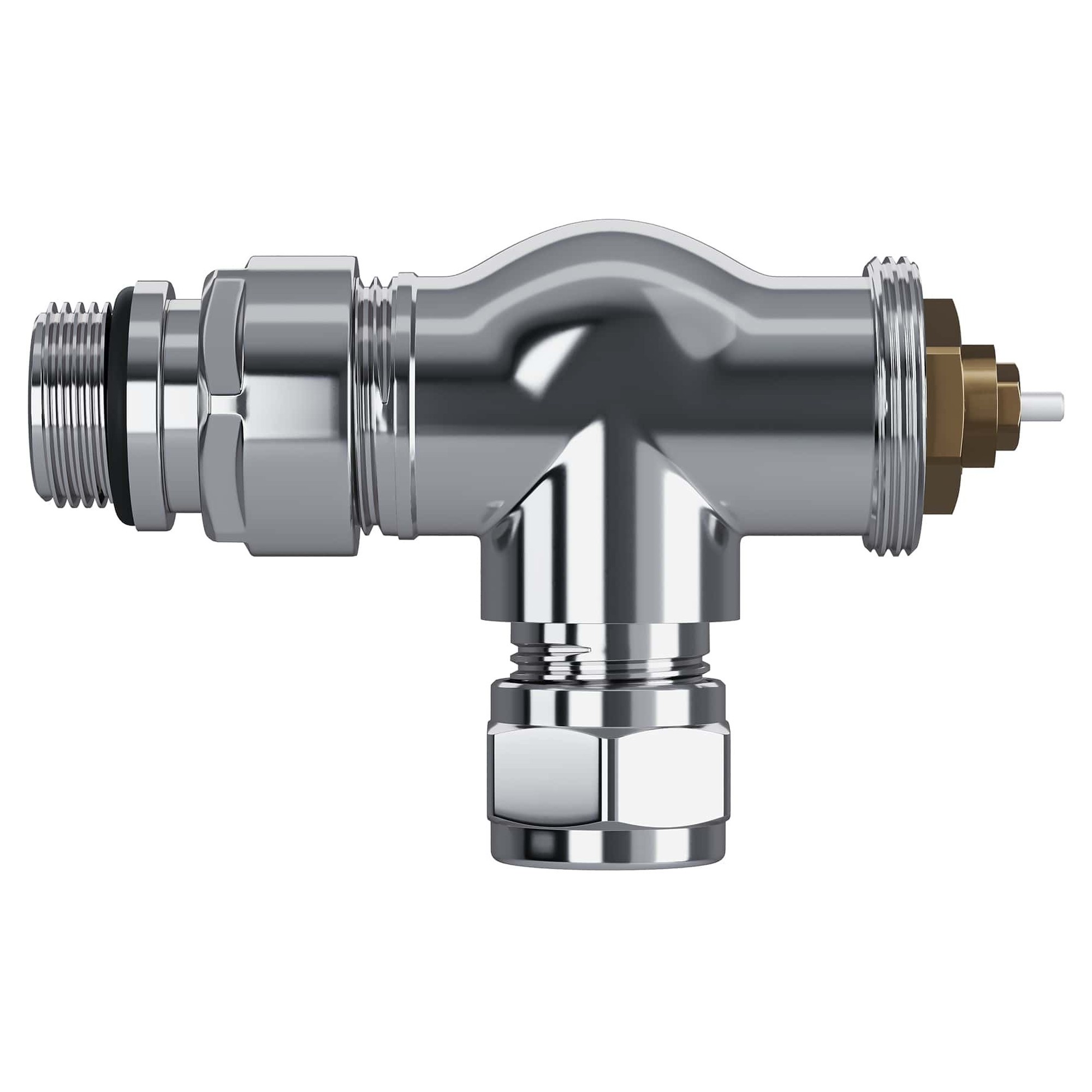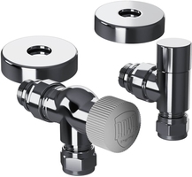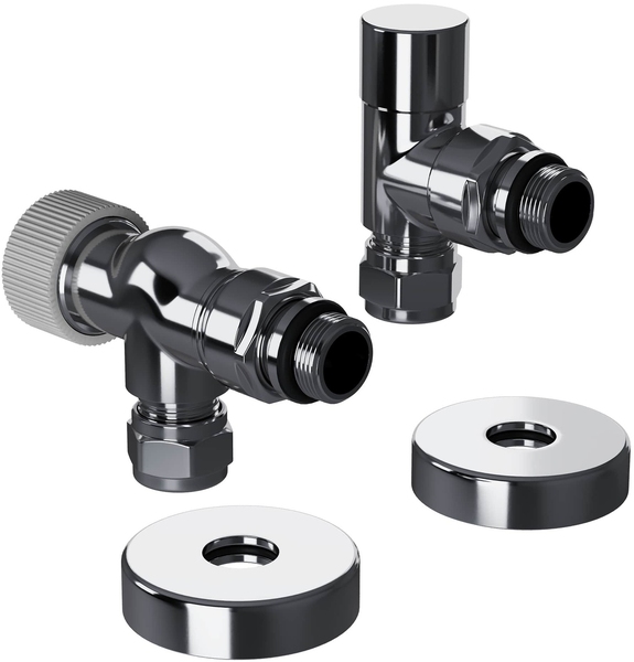 Термостатические наборы серии Design Pro поставляется в необходимой для чистового монтажа комплектации: клапан термостатический для установки на подающий трубопровод, запорный клапан для установки на обратный трубопровод, 2 гайки-фитинга для подключения клапанов к монтажной трубке 15 мм и 2 цельных латунных отражателя с внутренним резиновым уплотнением внутренним диаметром 15,2 мм.