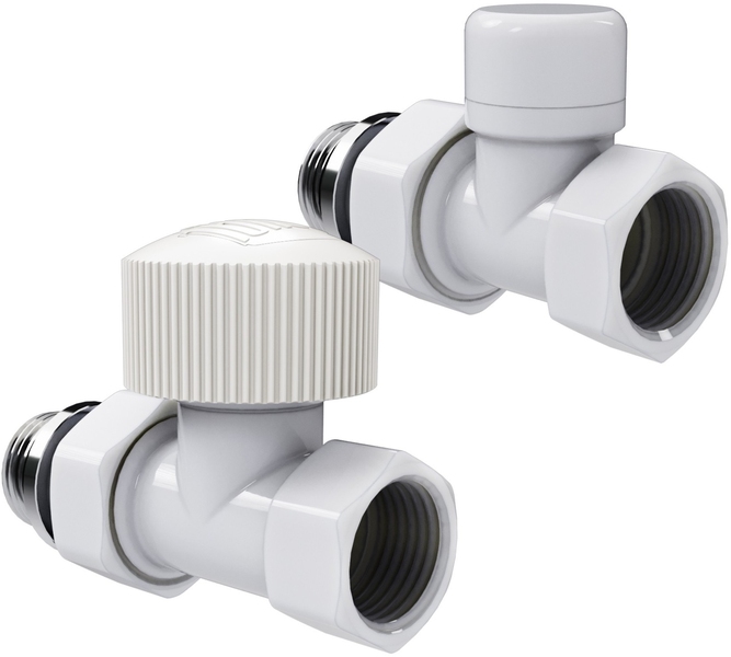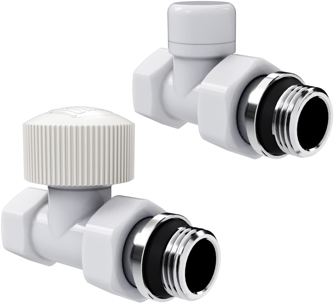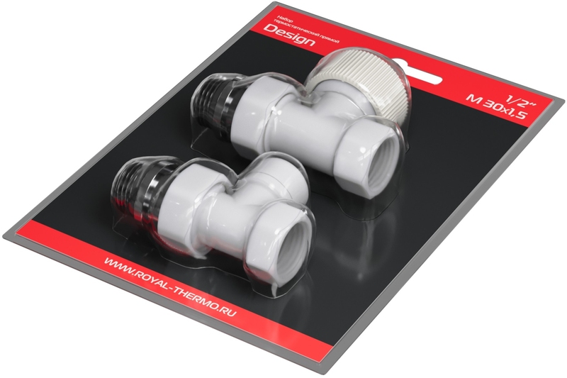 Термостатические наборы серии Design поставляется в комплектации: клапан термостатический для установки на подающий трубопровод, запорный клапан для установки на обратный трубопровод.