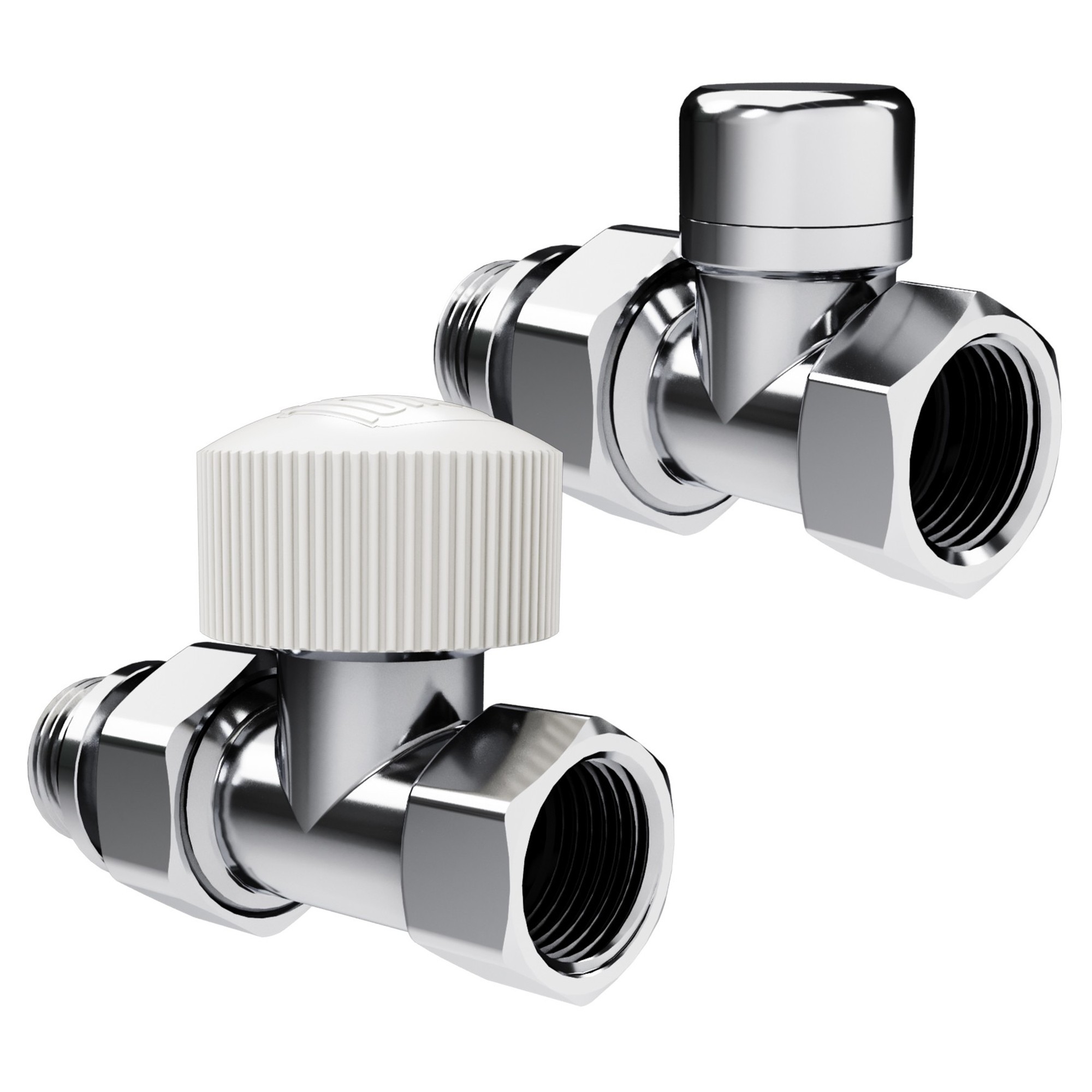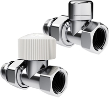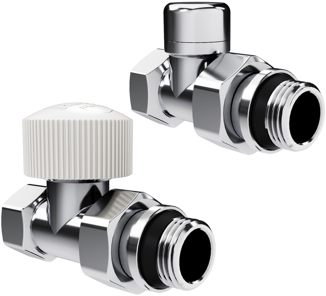 Термостатические наборы серии Design поставляется в комплектации: клапан термостатический для установки на подающий трубопровод, запорный клапан для установки на обратный трубопровод.