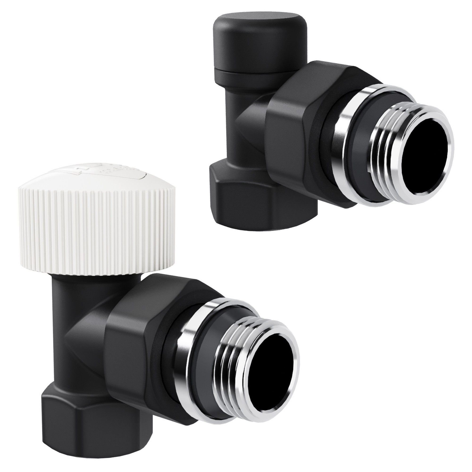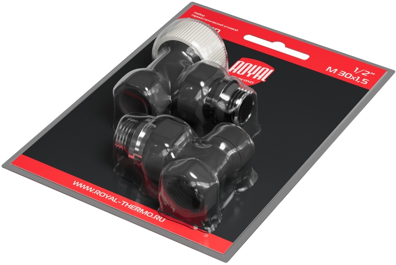 Термостатические наборы серии Design поставляется в комплектации: клапан термостатический для установки на подающий трубопровод, запорный клапан для установки на обратный трубопровод.