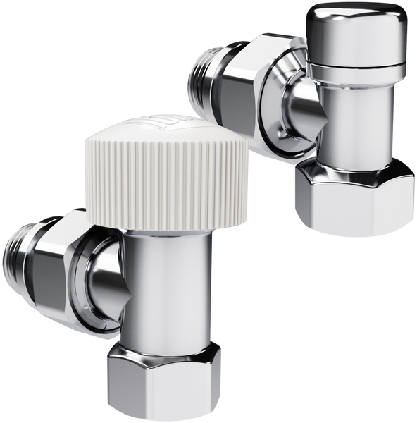 Термостатические наборы серии Design поставляется в комплектации: клапан термостатический для установки на подающий трубопровод, запорный клапан для установки на обратный трубопровод.