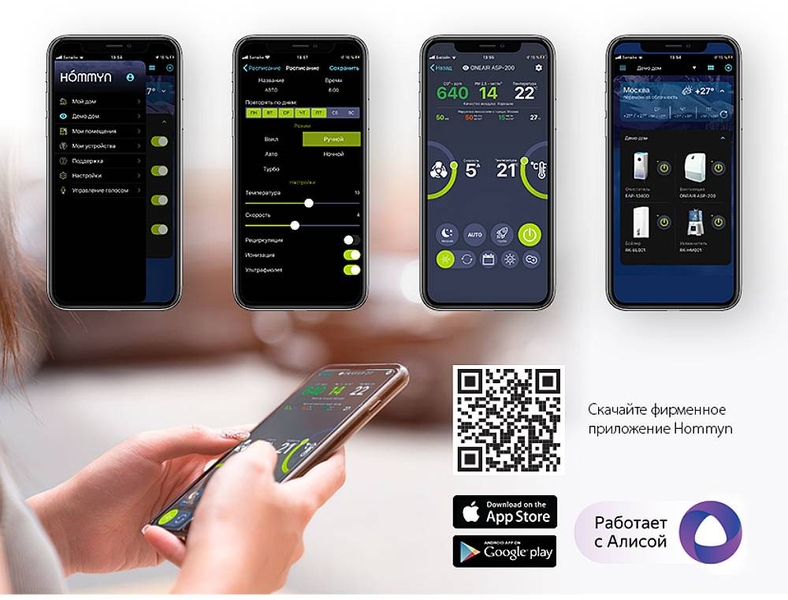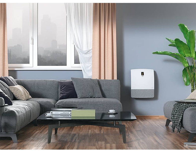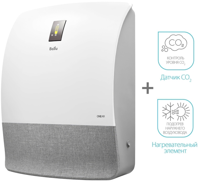 Ballu ONEAIR ASP-200SMAX – инверторный приточный очиститель воздуха с интеллектом. Передняя панель корпуса покрыта стильной и технологичной тканью, которая будет сочетаться с любым дизайнерским решением в вашем помещении. Предназначен для подачи свежего и очищенного воздуха в любые жилые помещения площадью до 75 кв.м. В комплекте высокоэффективный керамический нагревательный элемент мощностью 1200 Вт, который подогревает входящий воздух. При этом прибор эффективно работает в осенне-зимний период при температуре наружного воздуха до -40°С. Профессиональная система очистки воздуха, состоящая из 6 ступеней, устраняет 99,9% загрязнений в воздухе, поглощает неприятные запахи, обеззараживает от вирусов и бактерий. В приборе есть арома-капсула для масел, позволяющая создать индивидуальную атмосферу на любой вкус. Встроенный датчик РМ2,5 в зависимости от качества воздуха автоматически управляет интенсивностью очистки в режиме циркуляции. Датчик CO2 (в комплекте) контролирует уровень углекислого газа в помещении и автоматически управляет клапаном притока, поддерживая оптимальный уровень CO2. Прибор имеет удобный интерфейс, который обеспечивают цветной дисплей и полифонический звуковой сигнал, встроенный Wi-Fi модуль для удаленного управления прибора с мобильных устройств, пульт ДУ в комплекте.