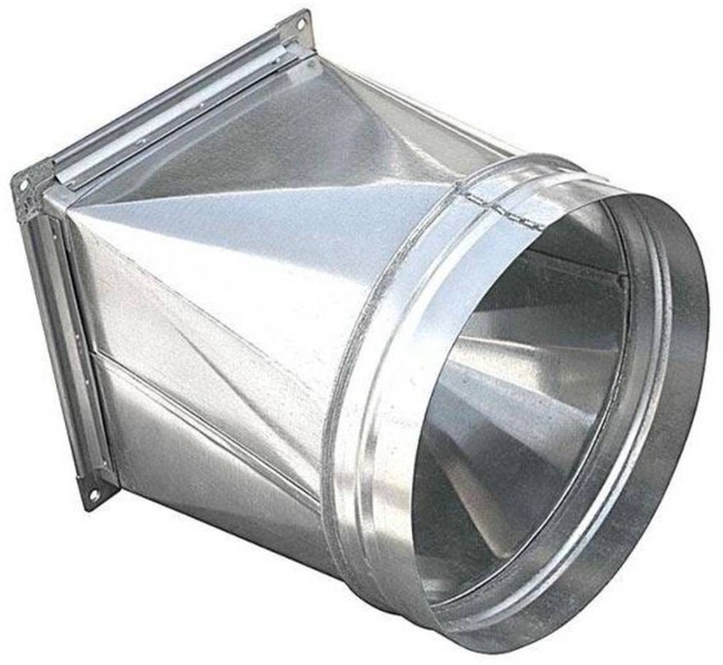Переход 200х200/ф160, h300 используется для соединения воздуховодов разных форм и размеров, в частности, для перехода от прямоугольного сечения 200х200 мм к круглому диаметром 160 мм, изменяя при этом поток воздуха и обеспечивая плавное соединение элементов системы вентиляции.