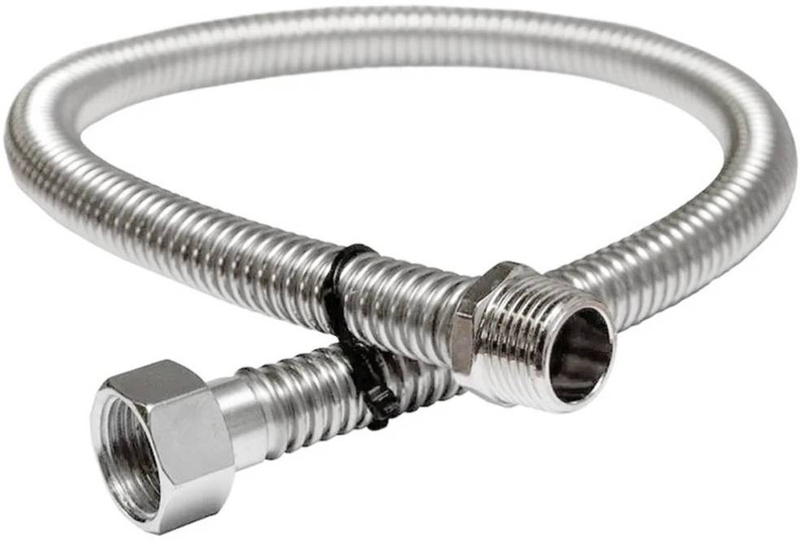 Подводка сильфонного типа представляет собой гофрированный рукав, изготовленный из нержавеющей стали марки AISI 304 c приваренными аргонно-дуговой сваркой фитингами.