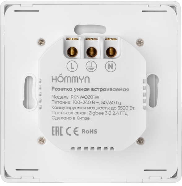 Розетка умная встраиваемая HOMMYN zigbee RKNWOZ01W