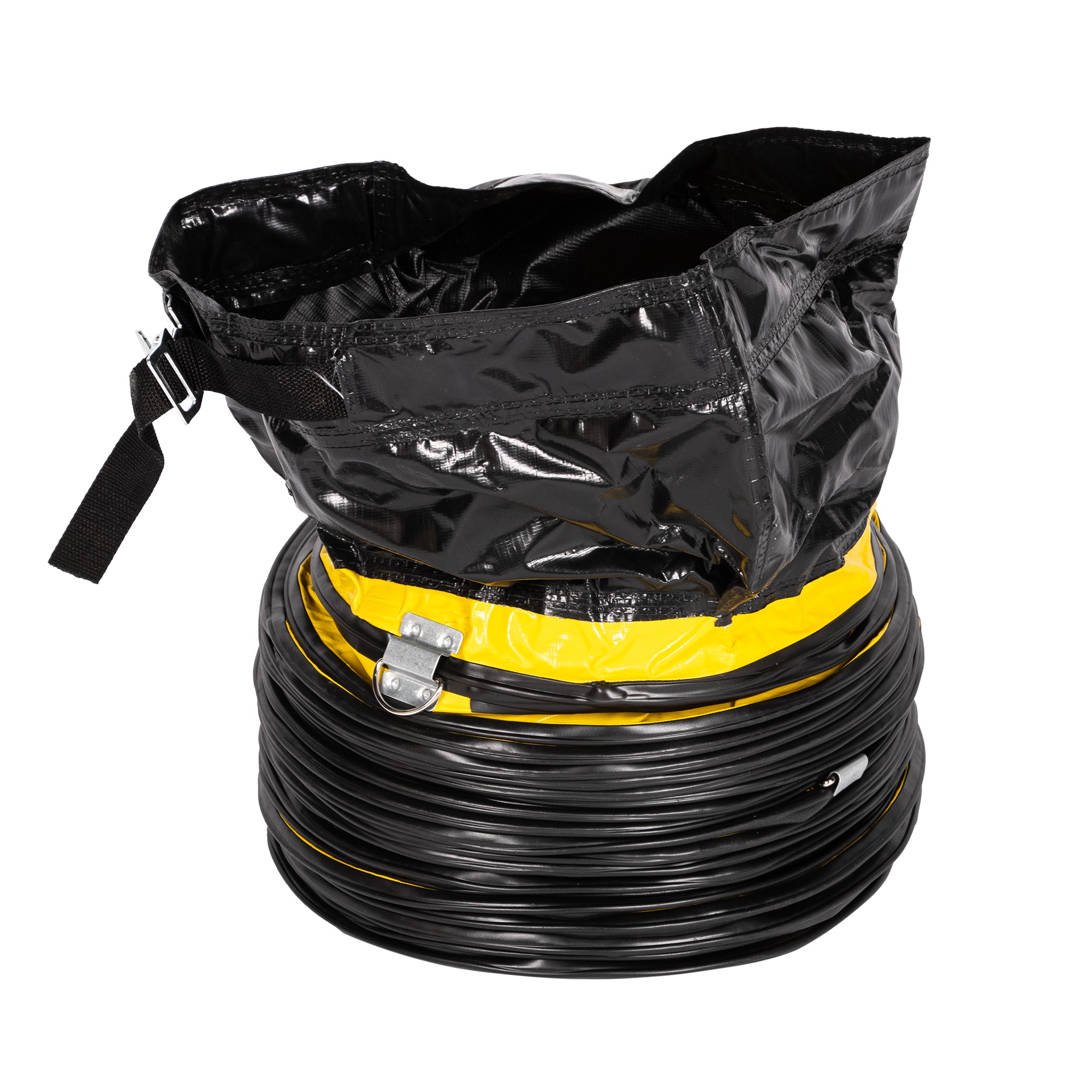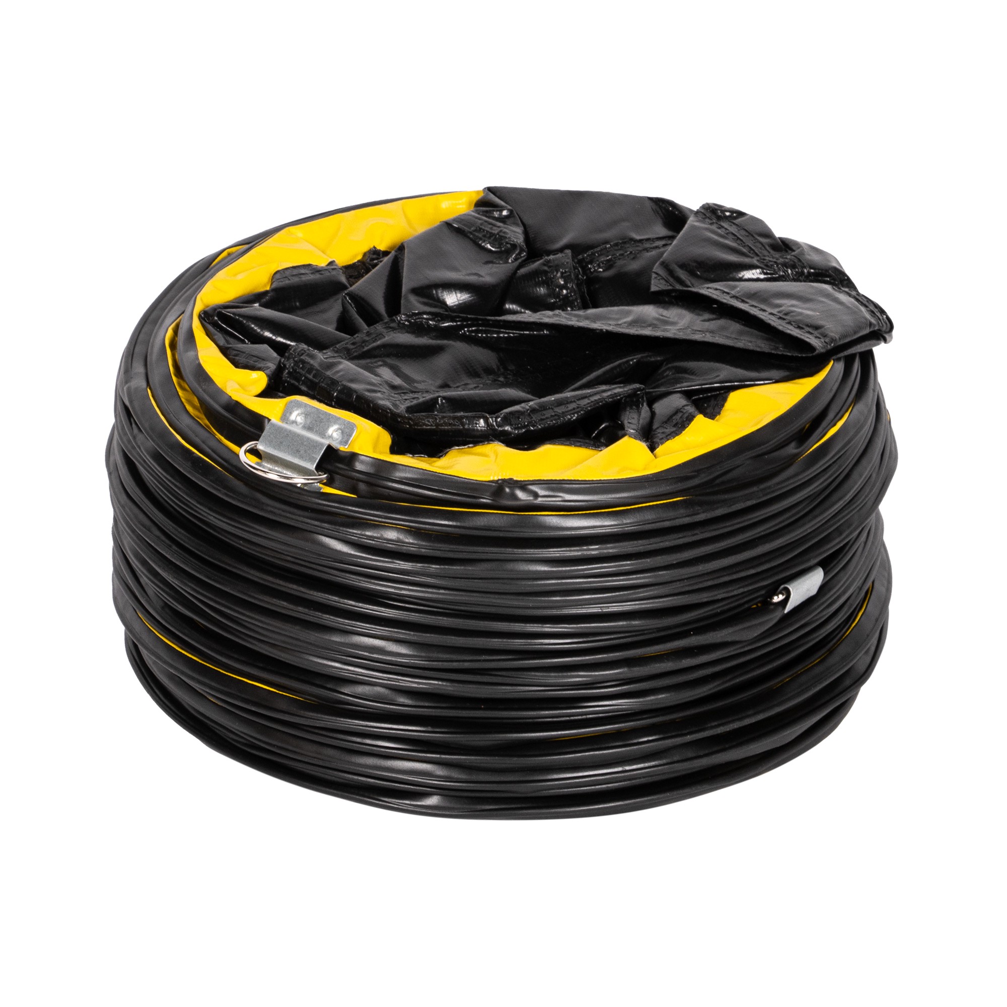 Выполнен из негорючей ПВХ ткани, водостойкий, армирован стальной спиралью.