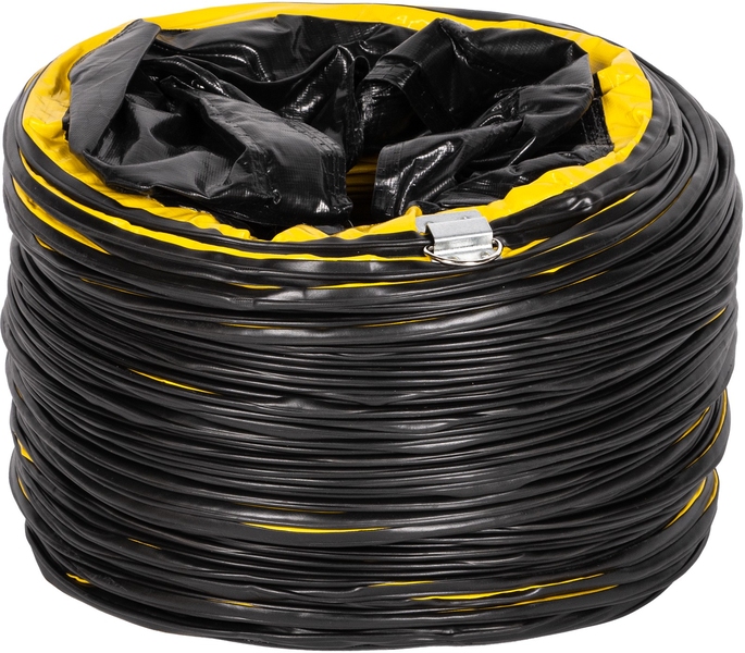 Выполнен из негорючей ПВХ ткани, водостойкий, армирован стальной спиралью.