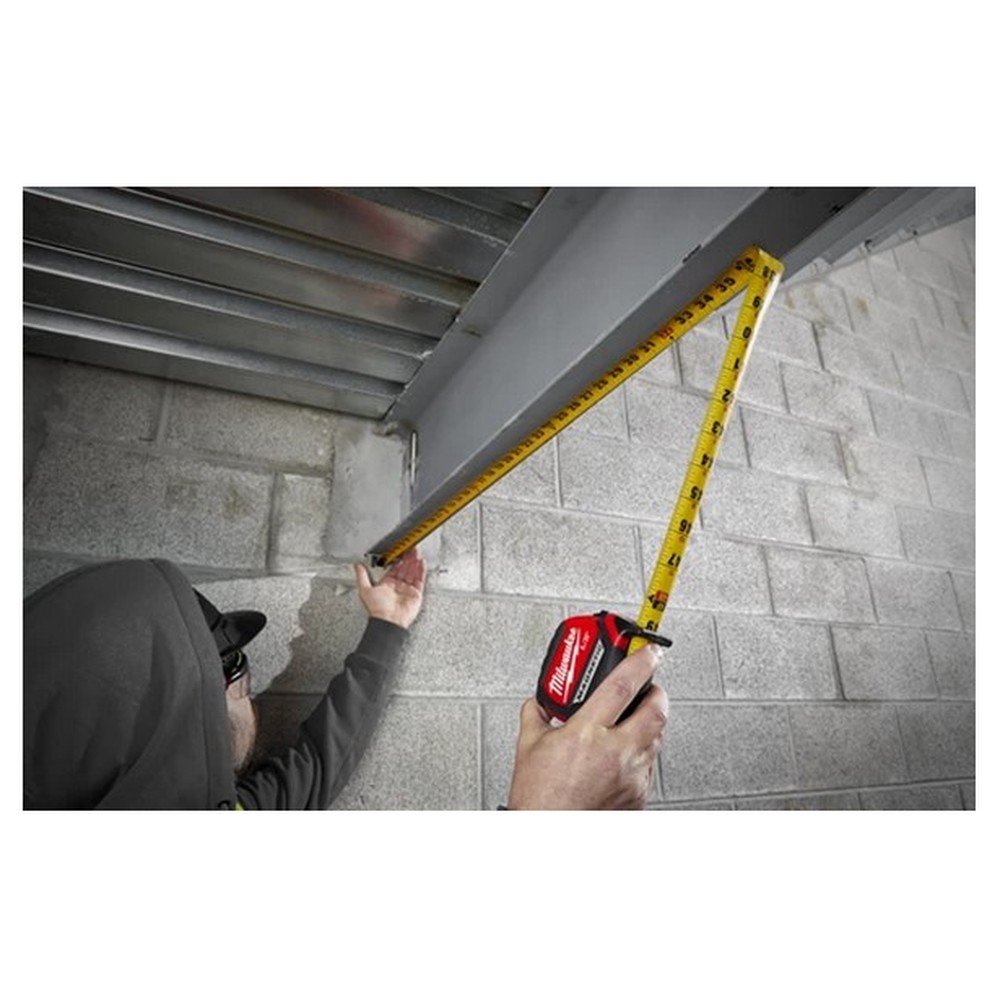 Усовершенствованный подпальцевый упор для удобного удержания при работе в одиночку. Более компактный крюк позволяет легче читать метки на шкале. Более удобный зажим для крепления к поясному ремню. Матовое нейлоновое покрытие ленты обеспечивает до 10 раз большую стойкость к повреждениям на стройплощадке. Лента шириной 27 мм с двусторонней шкалой для удобного измерения. Мощный двойной магнит в начале ленты позволяет легко крепить крюк к плоским поверхностям и круглым трубам. Масштабная шкала позволяет легко проводить расчеты по масштабным чертежам. Более компактная и эргономичная конструкция.