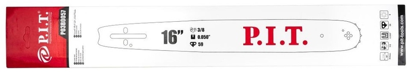 Шина для электропилы P.I.T. P03B0057 (16”, 3/8", 59 звеньев, подходит к PKE405-C4, PKE405-C5). Шина бензопилы служит направляющей для пильной цепи. Конструкция шины обеспечивает равномерное скольжение цепи и поток масла.