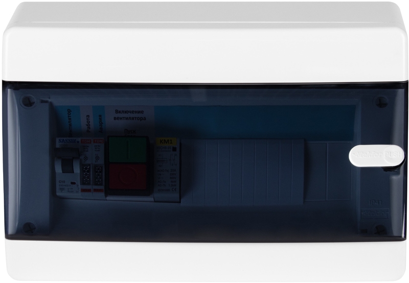 Шкаф управления обеспечивает управление вентиляторами любой системы кондиционирования воздуха (2-а однофазных по 2кВт каждый/ 1-н трехфазный до 4,5кВт), также применяется для осуществления контроля за работой циркуляционных насосов (до 300кВт), приводами воздушных заслонок (230 вольт), приводами клапанов, ступенями ККБ.
