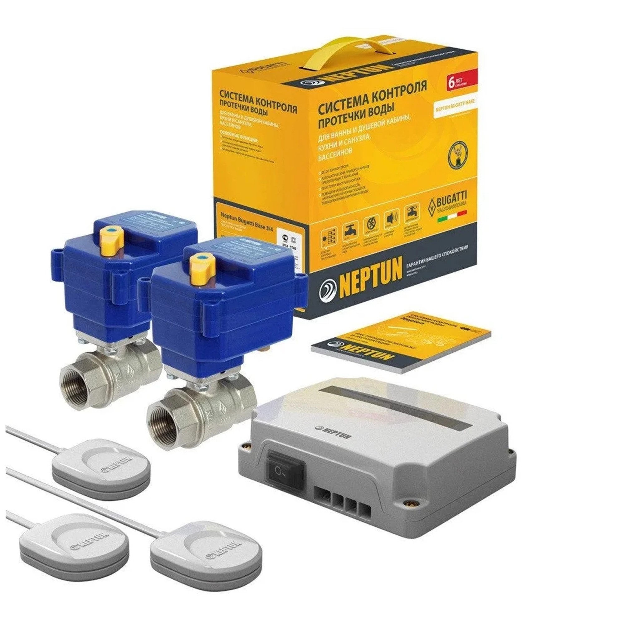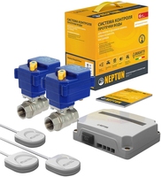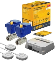 | Комплектность | Модуль управления Neptun Base - 1 шт; Кран шаровый с электроприводом Bugatti Pro 220В - 2 шт; Датчик проводной SW005 - 3 шт., длина 2 метра (возможно нарастить до 100 м.) |