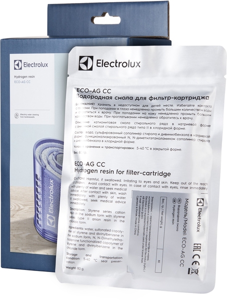Смола водородная Electrolux ECO-AG CC – инновационный продукт, предназначенный для использования в картриджах очистки воды в увлажнителях серии Electrolux 3910/3915.