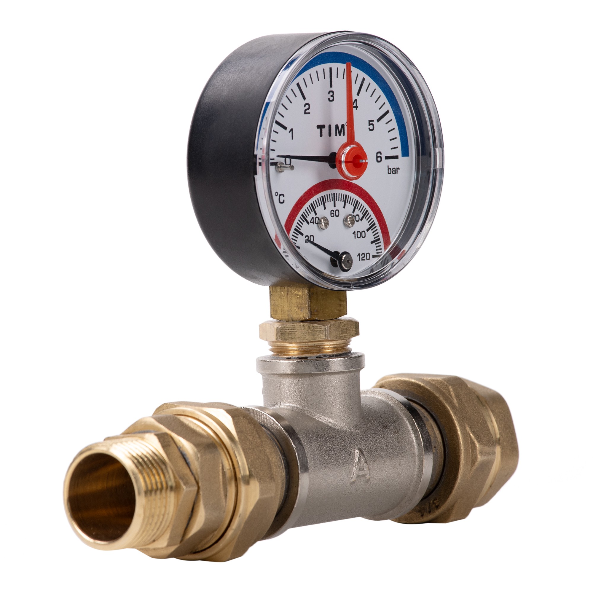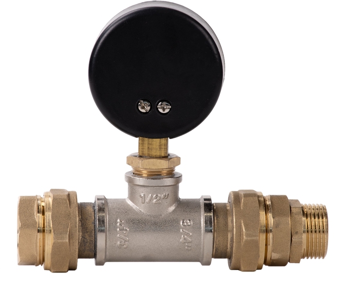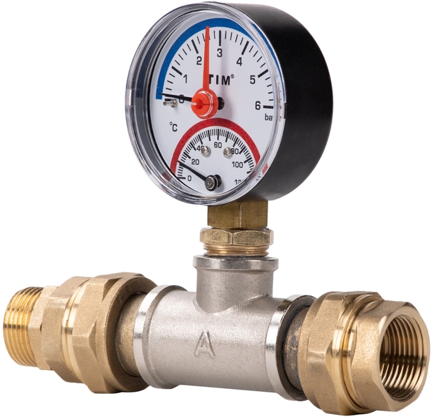 Термоманометр объединяет в одном корпусе манометр и термометр, имеет две шкалы — давления и температуры. Прибор комплектуется клапаном, позволяющим демонтировать термоманометр без разгерметизации системы.