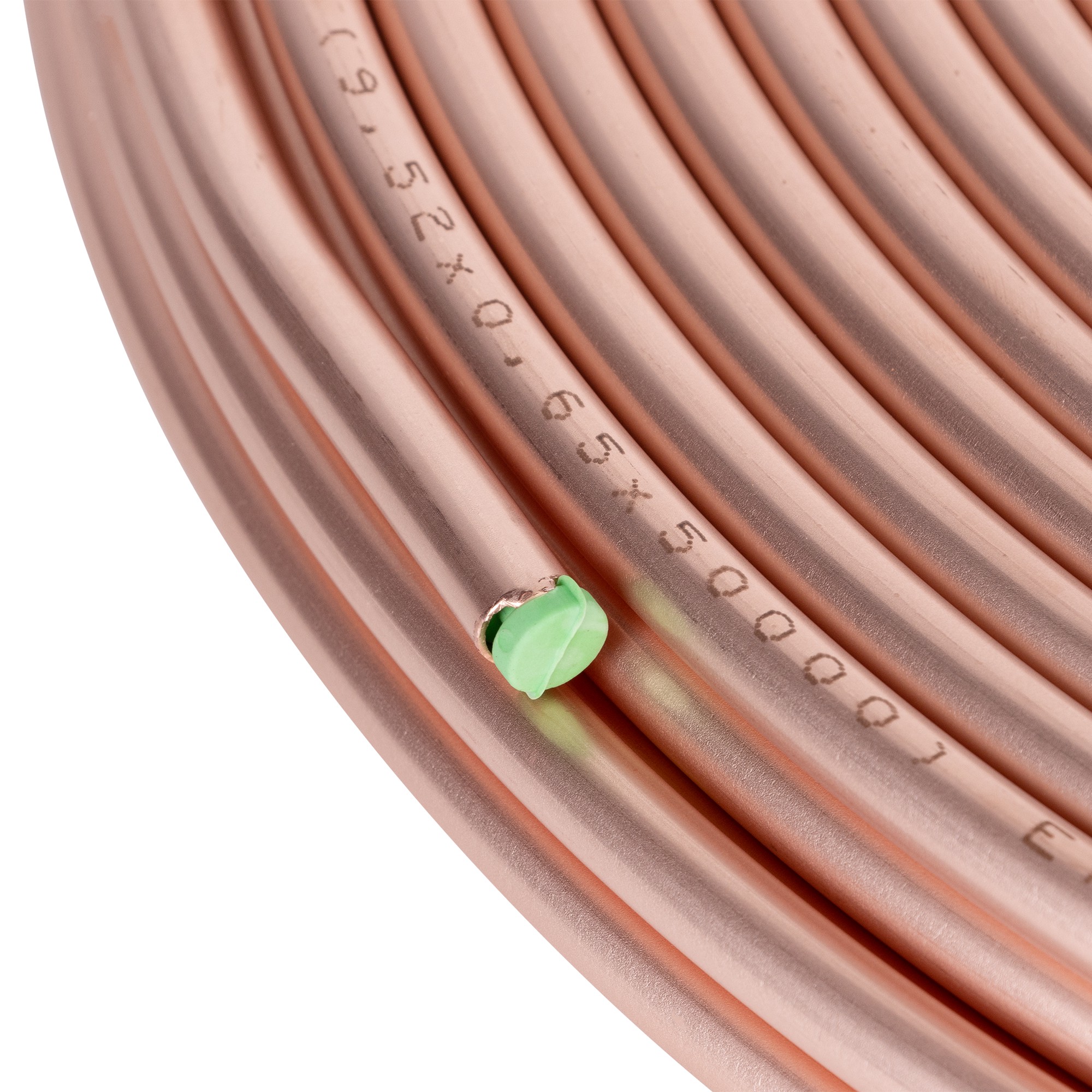 При монтаже оборудования систем кондиционирования воздуха, используются отожженые дюймовые медные трубы. Продукция производится в соответствии с европейским стандартом EN 12735-1. Содержание меди не менее 99,9%. Каждая бухта упакована в герметичную полиэтиленовую пленку и имеет на концах трубы заглушки, для исключения попадания внутрь пыли и грязи. На поверхности трубы нанесена заводская маркировка с техническими характеристиками.