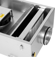 Приточная установка SHUFT серии ECO-SLIM выпускается в двух модификациях: или с водным нагреваем (модель 1100) или с электрическим нагревателем. В обеих модификациях воздушный клапан размещен снаружи корпуса, что улучшает его ремонтопригодность и позволяет выносить клапан с приводом к месту забора наружного воздуха. Установка обладает компактными габаритами и низким уровнем шума, что значительно упрощает выбор его размещения в квартире. Установка полностью укомплектована всем необходимым для работы и готова к монтажу.