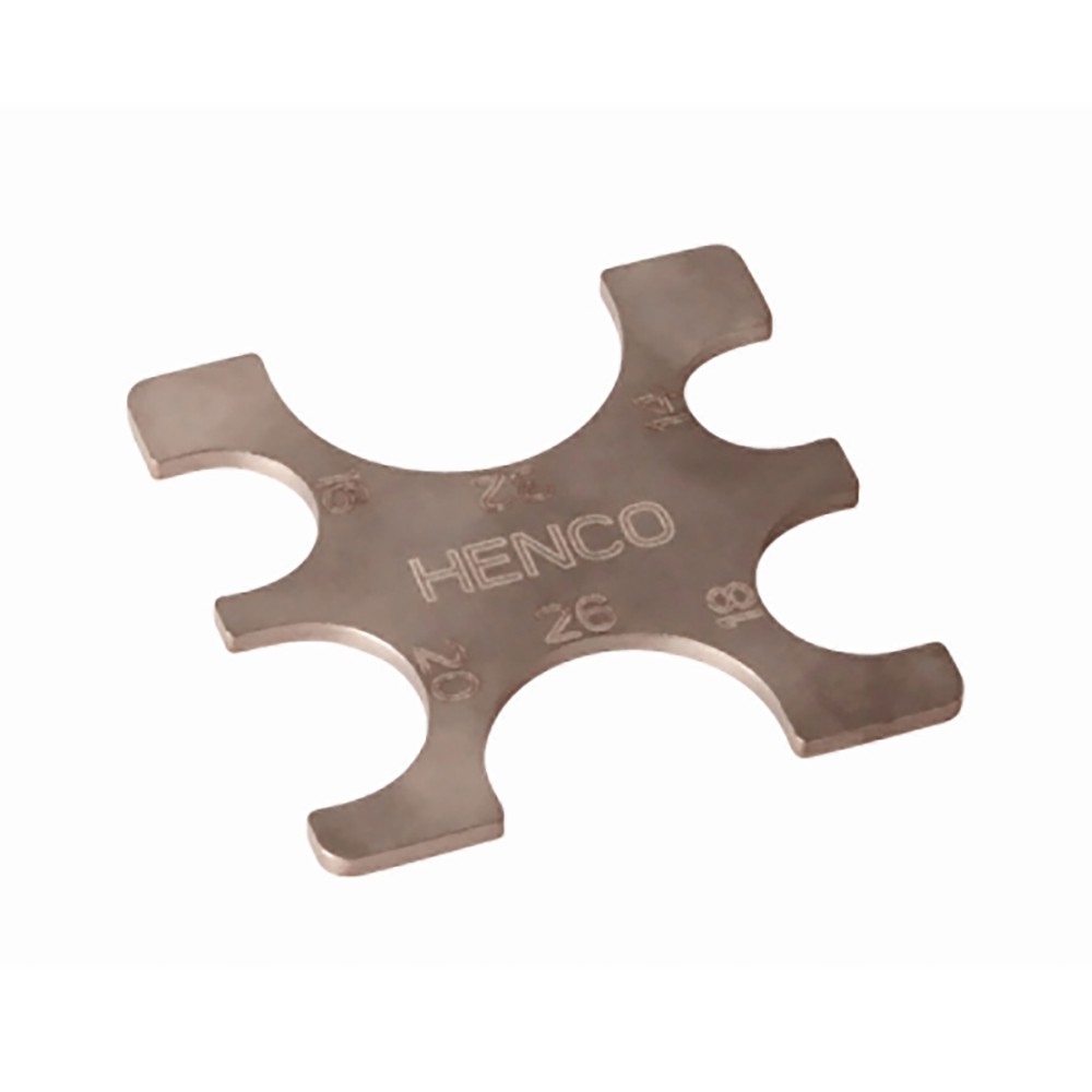 Устройство необходимо для осуществления контроль за качеством обжима соединений, подходит только для обжимных соединений, производимых с профилем Henco (профиль BE) или профилем TH (диаметром до 26 мм) в сочетании с пресс-соединением Henco из PVDF или латуни.