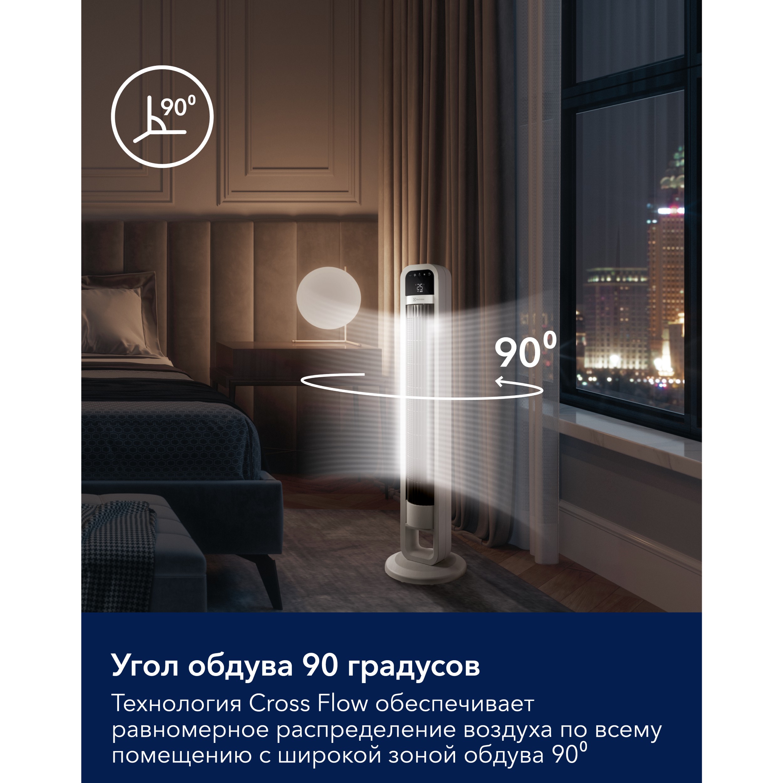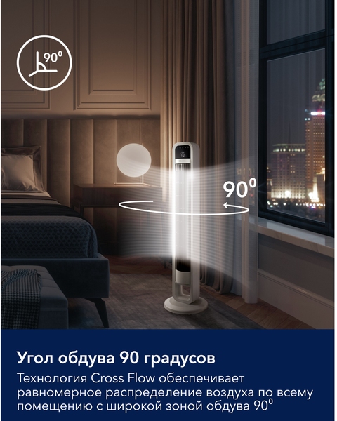 Технология Cross Flow обеспечивает вентилятору широкий угол обдува и создаёт максимально комфортную атмосферу в помещении.