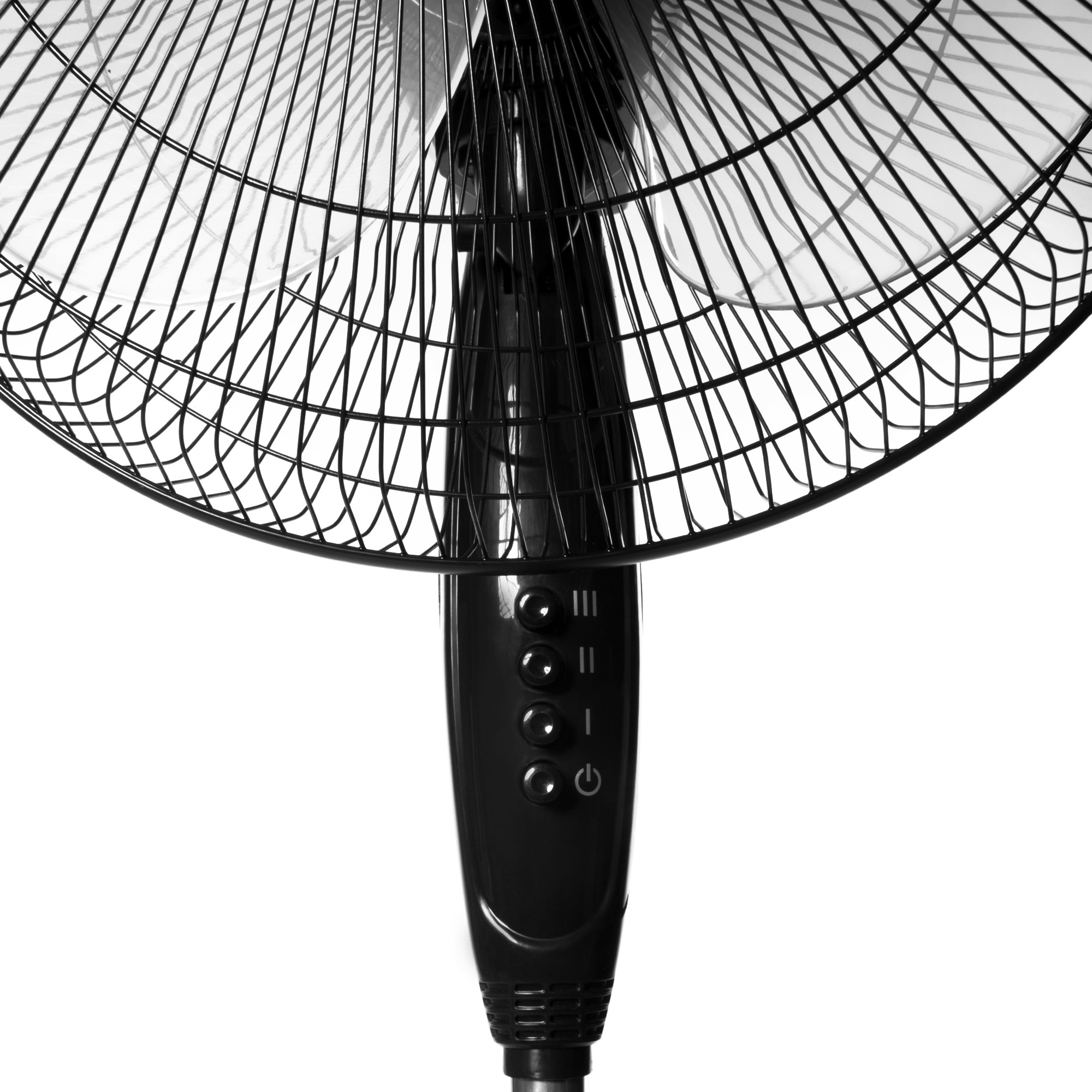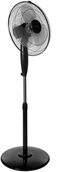 Утяжеленное круглое основание предотвращает опрокидывание вентилятора. Высота прибора регулируется до 1,3 метра. Вентилятор обладает 3 скоростными режимами – вы легко сможете подобрать оптимальный.