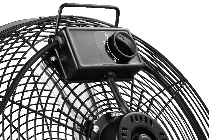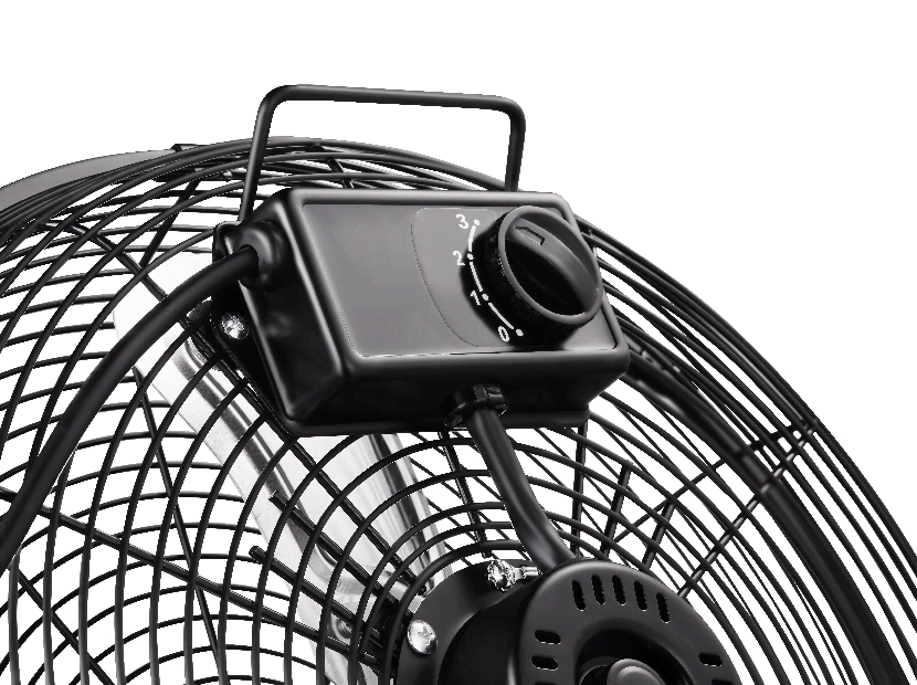 С помощью кронштейна, идущего в комплекте, вентилятор можно подвесить на стену, а угол наклона отрегулировать с помощью удобных барашковых винтов.
