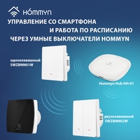 Для управления вытяжным вентилятором со смартфона и настройки работы по расписанию необходимо подключить его через умный выключатель или реле Hommyn! при необходимости установить Блок управления (шлюз) HOMMYN