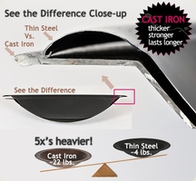 Материал, из которого изготовлена чаша – чугун. Он имеет высокую износостойкость, прочность и надежность. Материал быстро нагревается, но очень медленно остывает. Поэтому у вас не будет необходимости постоянно поддерживать костер в горящем состоянии, чтобы сохранять тепло, даже после затухания чаша еще на протяжении длительного времени будет вас согревать.
