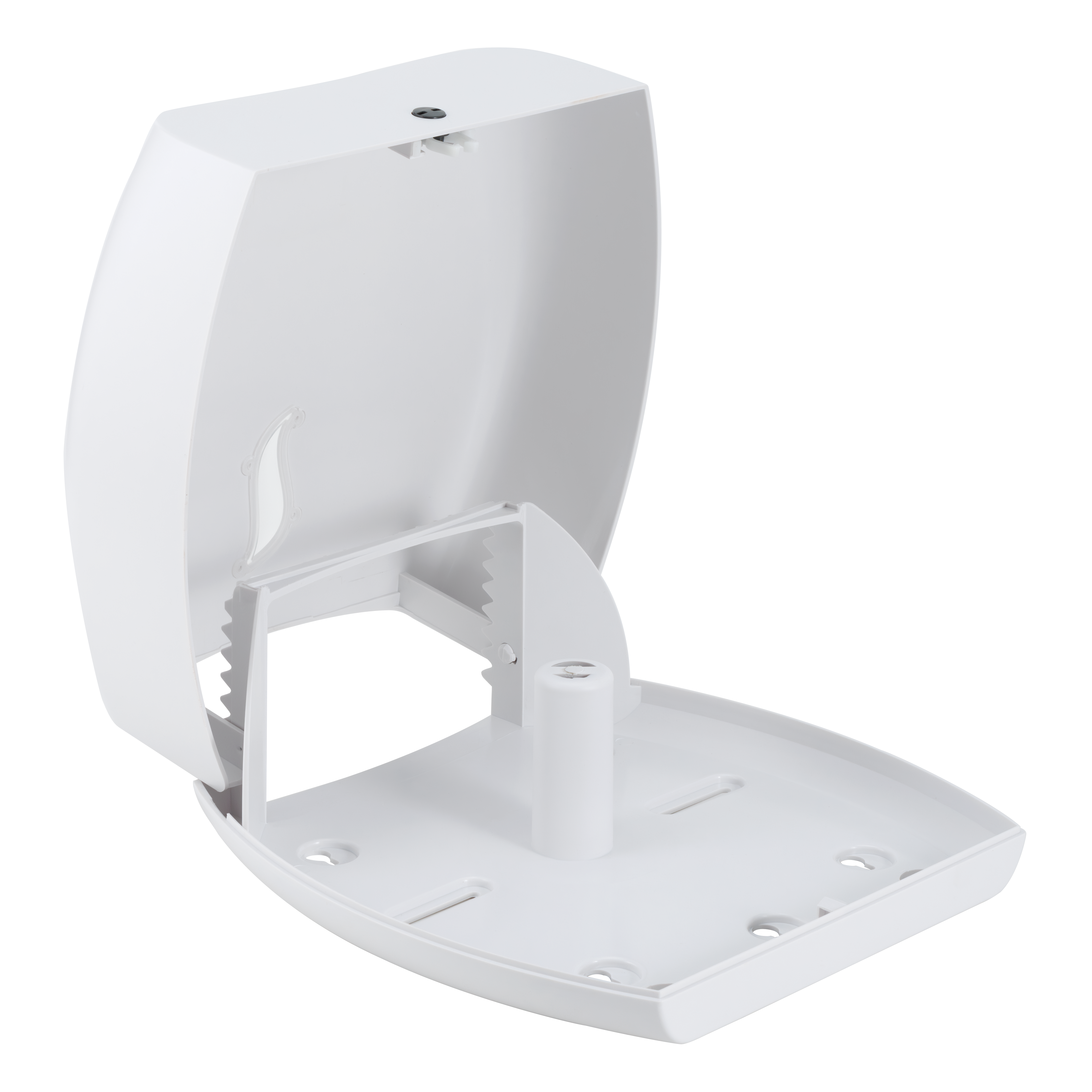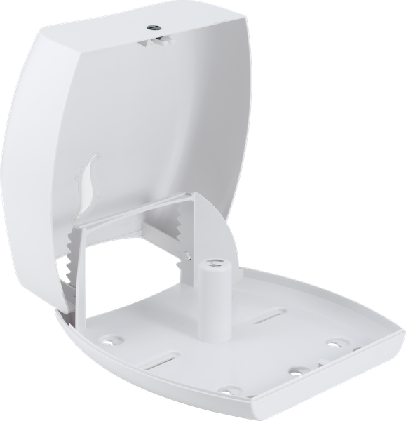 Диспенсер выполнен из ударопрочного пластика ABS белого цвета. Оригинальное смотровое окно в виде листка позволяет контролировать наличие бумаги в диспенсере.