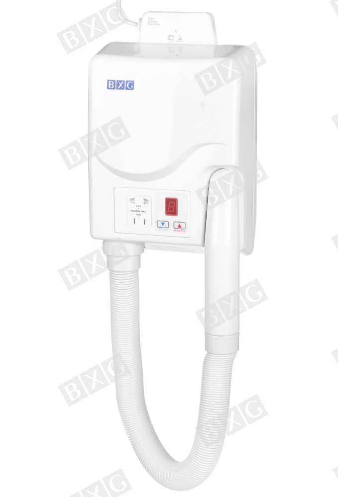 Фен настенный BXG-2000A1 имеет встроенную розетку для подключения маломощных электроприборов.