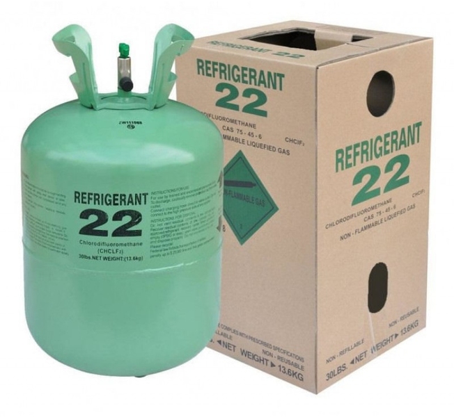 Фреон R22 (Дифторхлорметан) - инертный в химическом отношении, негорючий, не взрывоопасный сжиженный под давлением газ со слабым запахом хлороформа. При нормальных условиях Фреон R22 является стабильным веществом. При нагревании свыше 250°С образует ядовитые продукты, например, фосген (COCl2). Под воздействием температур свыше 400°С может разлагаться с образованием: тетрафторэтилена (IV класс опасности), хлористого водорода (II класс опасности), фтористого водорода (I класс опасности).