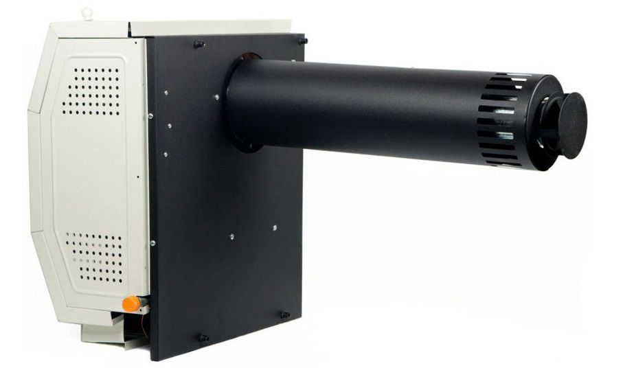 Телескопическая труба имеет коаксиальную конструкцию - по внутренней части отводятся продукты горения, а по внешней идет приток воздуха снаружи. При этом отводимые газы разогревают поступающий воздух, в зимний период это способствует более полному сгоранию топлива.
