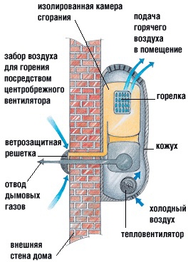 Безопасность. Закрытый цикл горения делает конвектор абсолютно безопасным для здоровья. Забор воздуха и выброс продуктов горения происходит на улицу, телескопический газоотвод входит в комплект поставки. При использовании конвектора исключены промерзания системы.