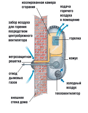 Безопасность. Закрытый цикл горения делает конвектор абсолютно безопасным для здоровья. Забор воздуха и выброс продуктов горения происходит на улицу, телескопический газоотвод входит в комплект поставки. При использовании конвектора исключены промерзания системы.