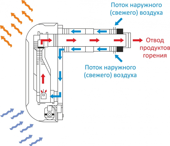 Безопасность. Закрытый цикл горения делает конвектор абсолютно безопасным для здоровья. Забор воздуха и выброс продуктов горения происходит на улицу, телескопический газоотвод входит в комплект поставки. При использовании конвектора исключены промерзания системы.