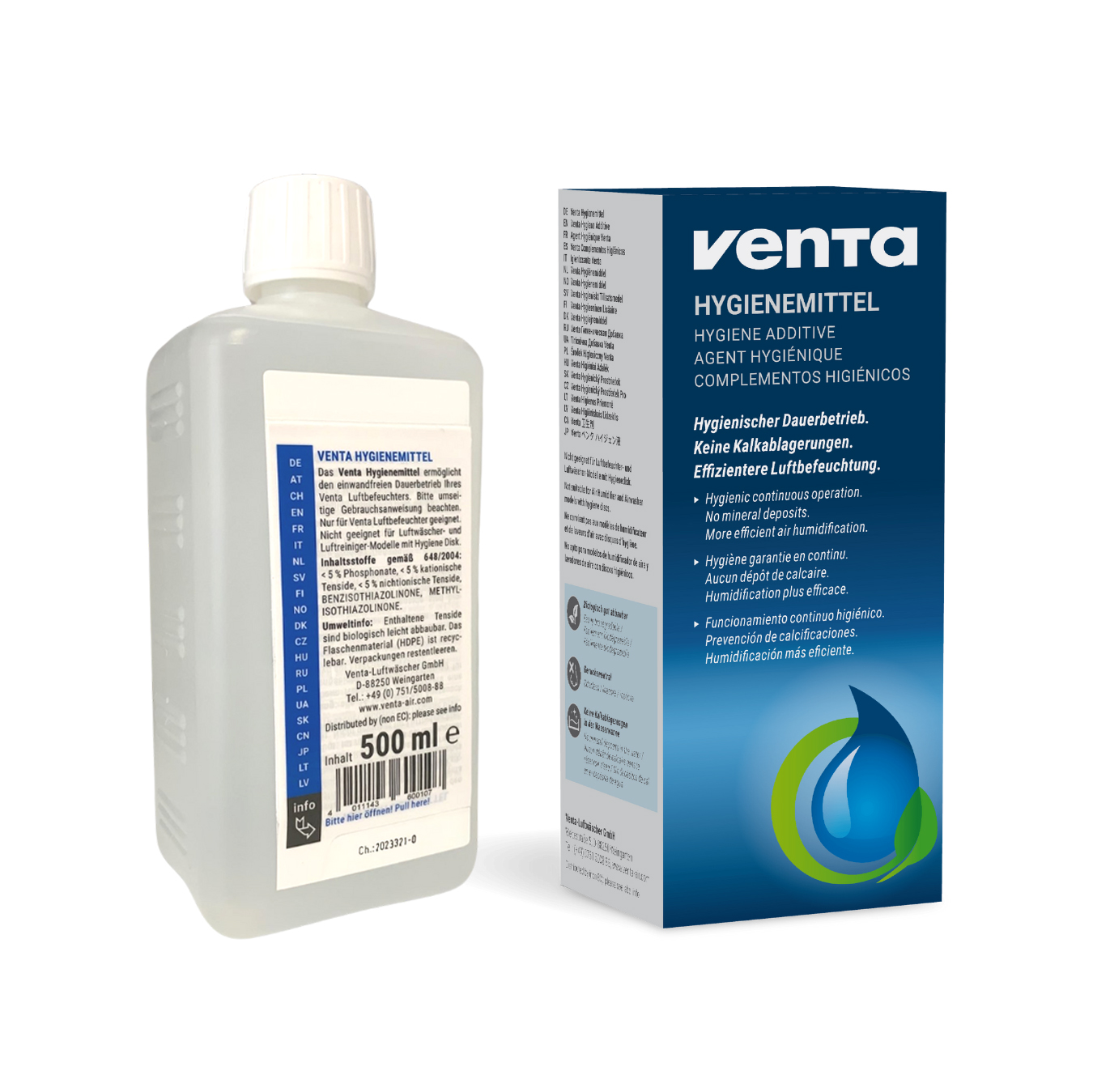 Venta-гигиеническая добавка служит не только как средство гигиены и очистки аппарата. Кроме этого, она повышает эффективность работы аппарата за счёт уменьшения поверхностного натяжения воды. Благодаря этому оптимальная влажность достигается легче и стабилизируется. Venta-гигиеническая добавка также удерживает из поступающего в аппарат воздуха водоотталкивающие (не смачиваемые водой) частицы пыли (такие как синтетические волокна, пропитанные натуральные волокна, шерсть животных), которые иначе отскакивали бы от поверхности воды как теннисный мячик.